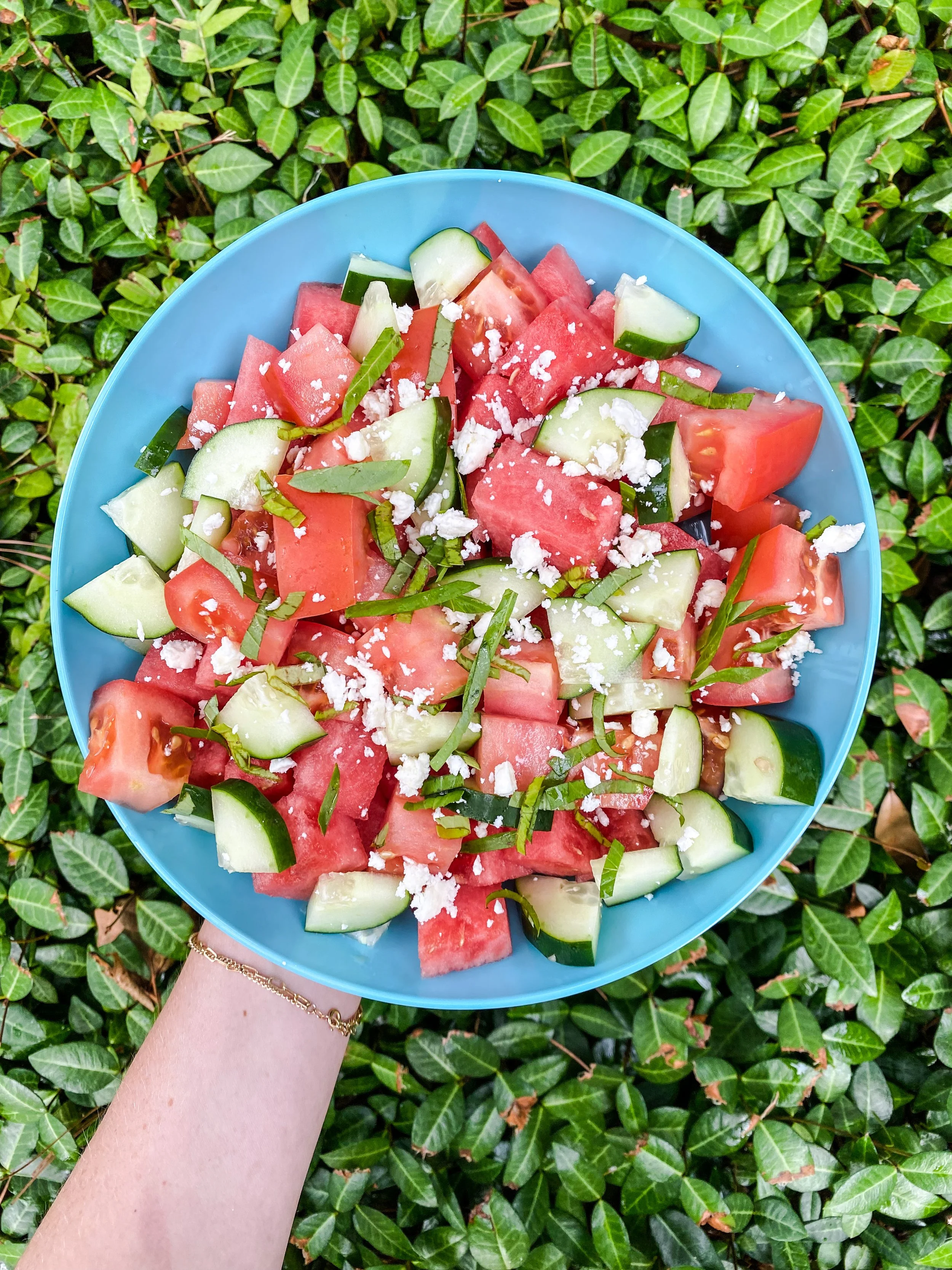 There’s really nothing better than biting into a fresh, juicy watermelon in the heat of the summer. This salad gives that same satisfaction, but with a salty twist to satisfy that mid-day pool lunch. It’s easy to make and easy to take on the go for a day at the pool or on the lake. Plus, it’s super hydrating and will keep you from getting dehydrated in that summer sun!